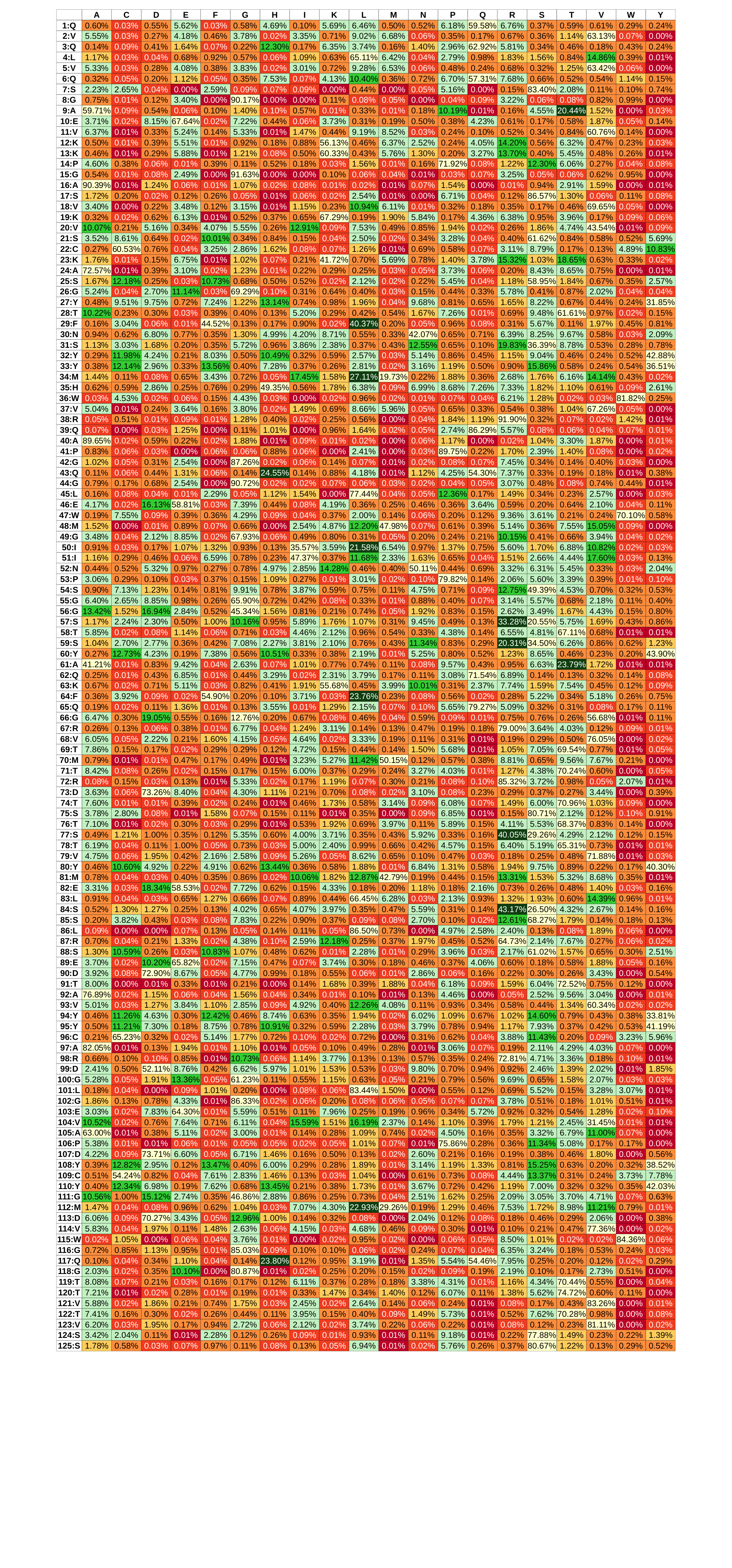Probability Table -